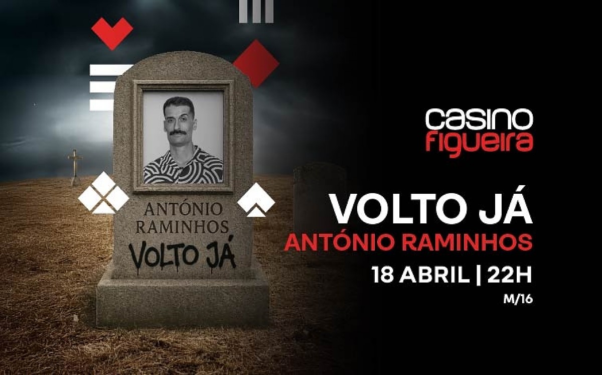 No dia 18 de abril, pelas 22h00, o Casino Figueira recebe António Raminhos com o seu mais recente espetáculo de stand-up comedy: “Volto Já”.