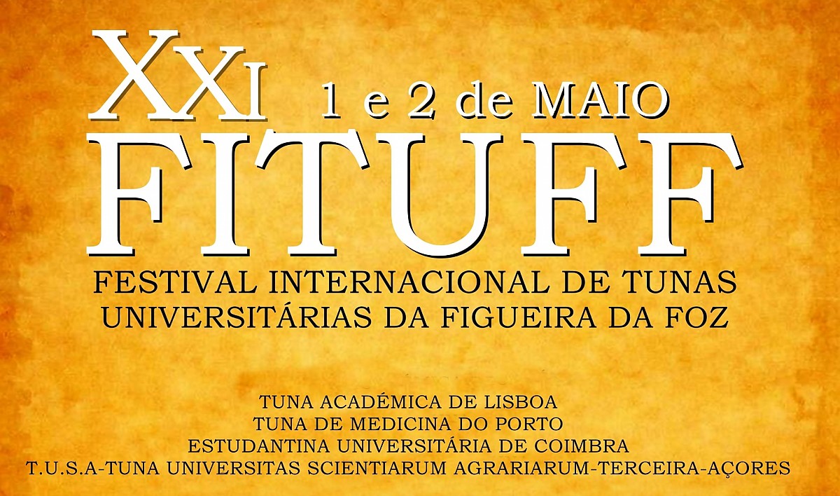 A Bruna – Tuna Universitária da Figueira da Foz tem a honra e o prazer de apresentar o XXI FITUFF, a realizar no dia 02 de Maio de 2026 pelas 21:00 horas (espectáculo principal), no magnífico Salão Caffé do histórico e imponente Casino Figueira.